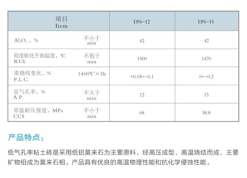 产品名称:玻璃窑用低气孔率粘土砖