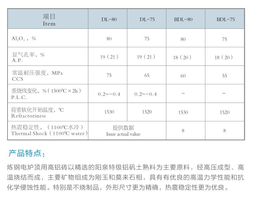 产品名称:炼钢电炉顶用高铝砖