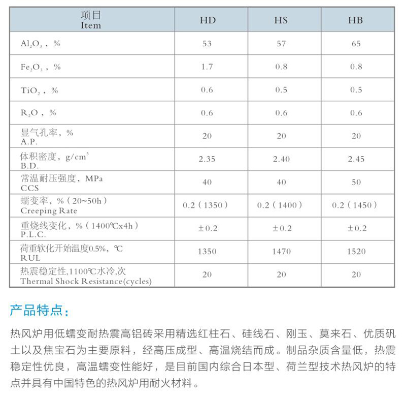 产品名称:热风炉用低蠕变耐热震高铝砖